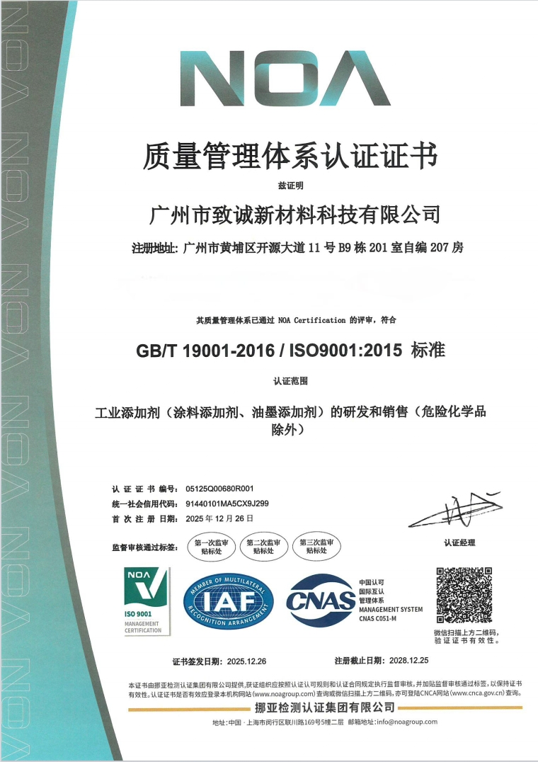 广州市致诚新材料科技有限公司是一家专业从事精细化工,高分子聚合物添加剂开发及应用研究的公司。